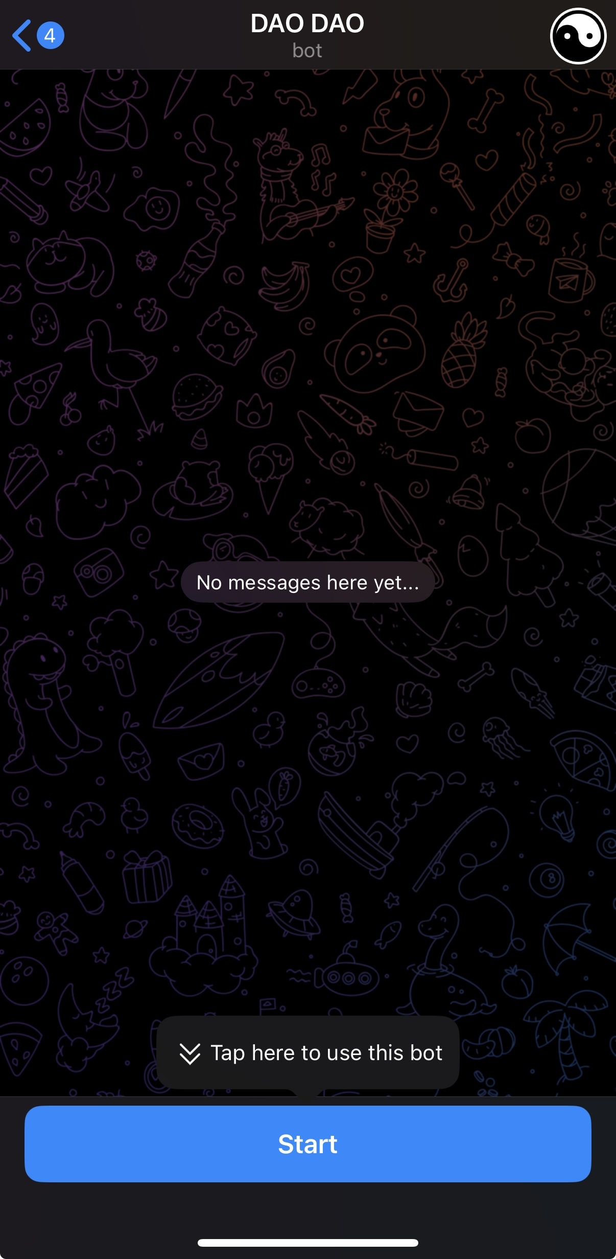Start by navigating to https://t.me/dao_dao_notifier_bot and tapping the