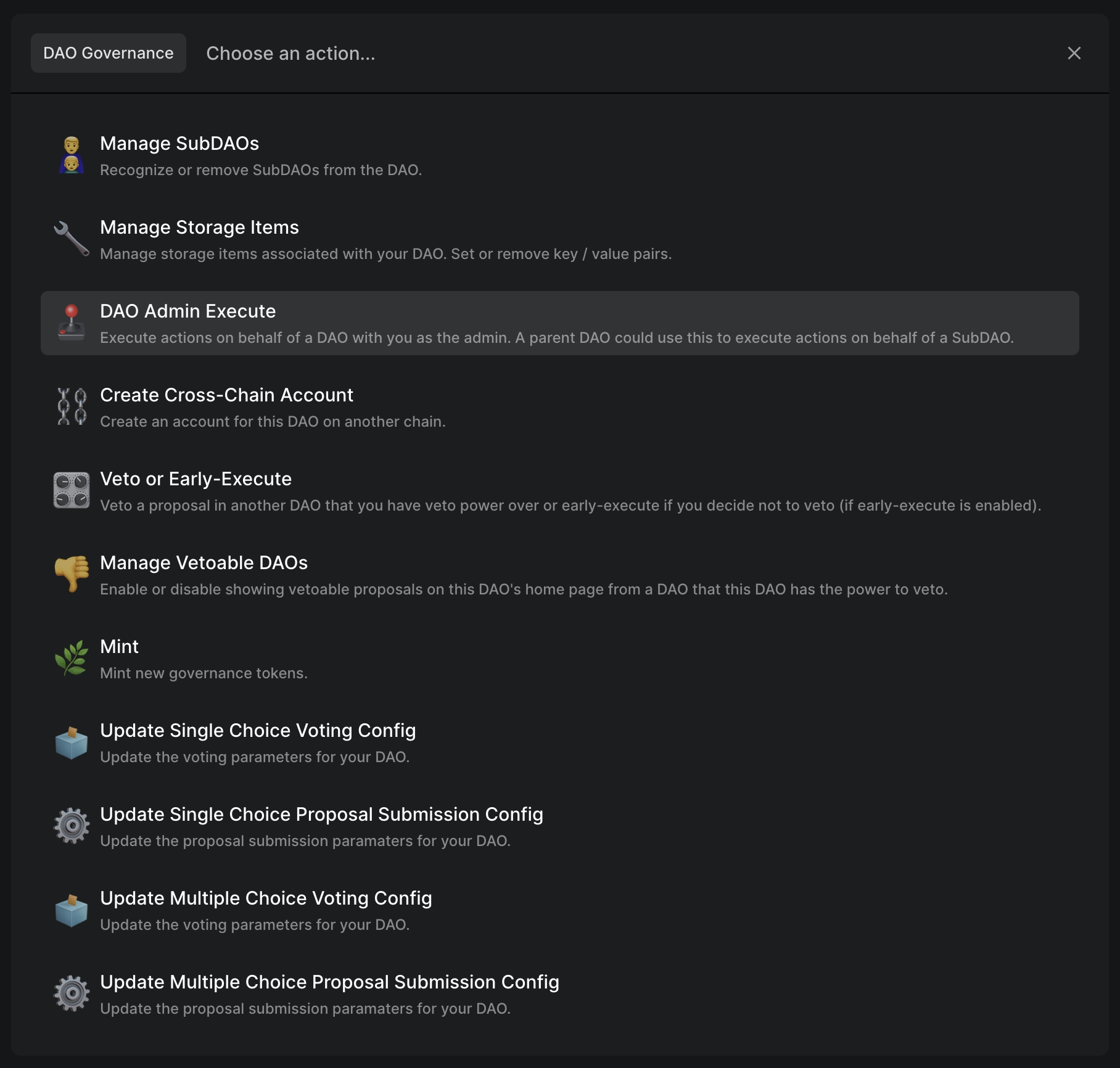 As discussed in What are SubDAOs?, the admin (or parent DAO) can execute any action on behalf of the SubDAO. Follow this guide or watch our video guide to learn how.