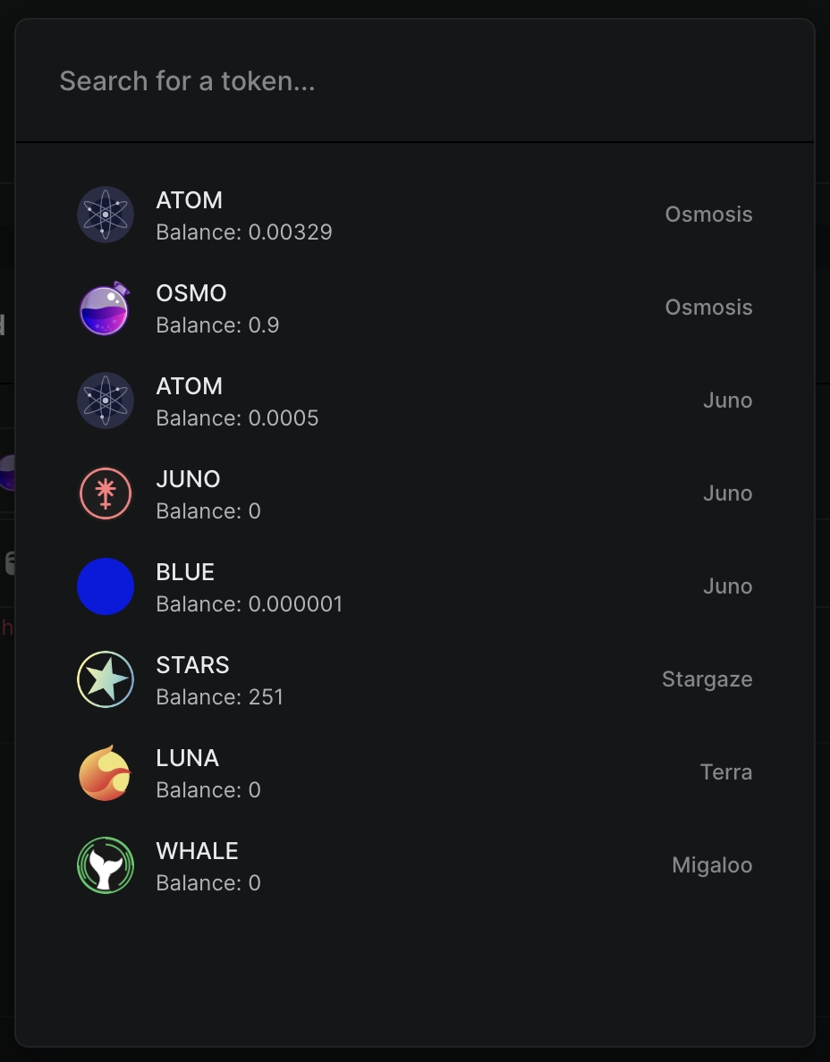 When you select the token you want to send, you will see a list of all tokens on all chains the DAO has an account on.