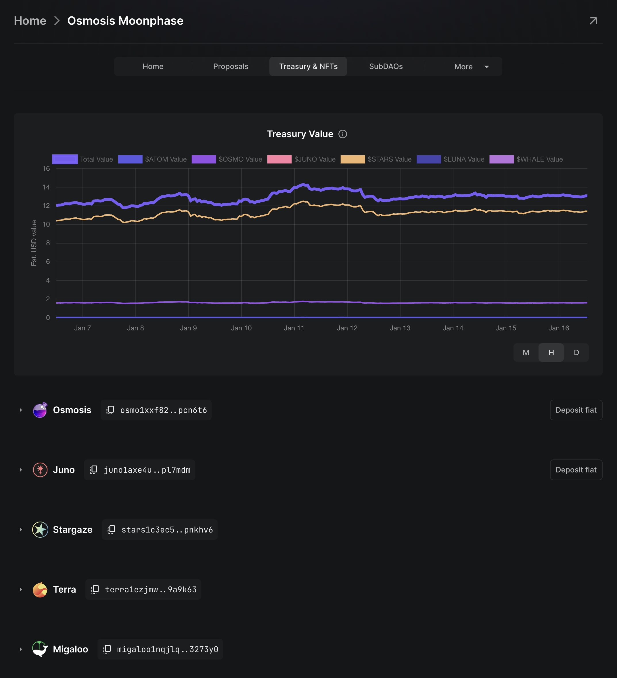 Once you have created cross-chain accounts, they will appear in the Treasury & NFTs