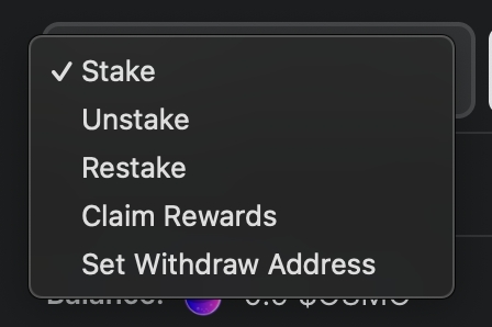 Aside from staking, you can also unstake, restake, claim rewards, and change the rewards withdrawal address.