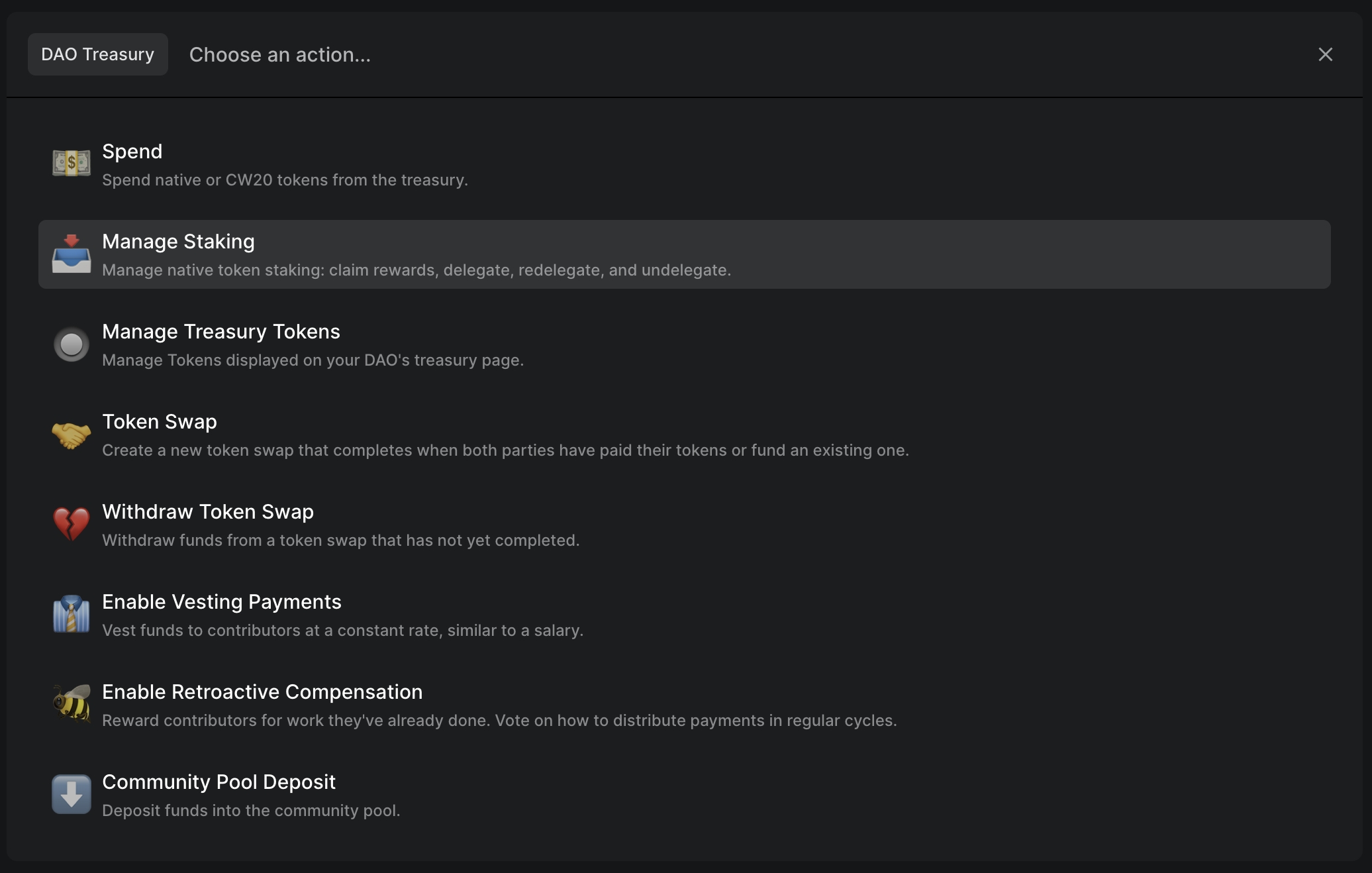 You can change the rewards withdrawal address to a wallet or DAO other than the DAO itself. This may be useful if you have a SubDAO that you want to receive staking rewards instead.