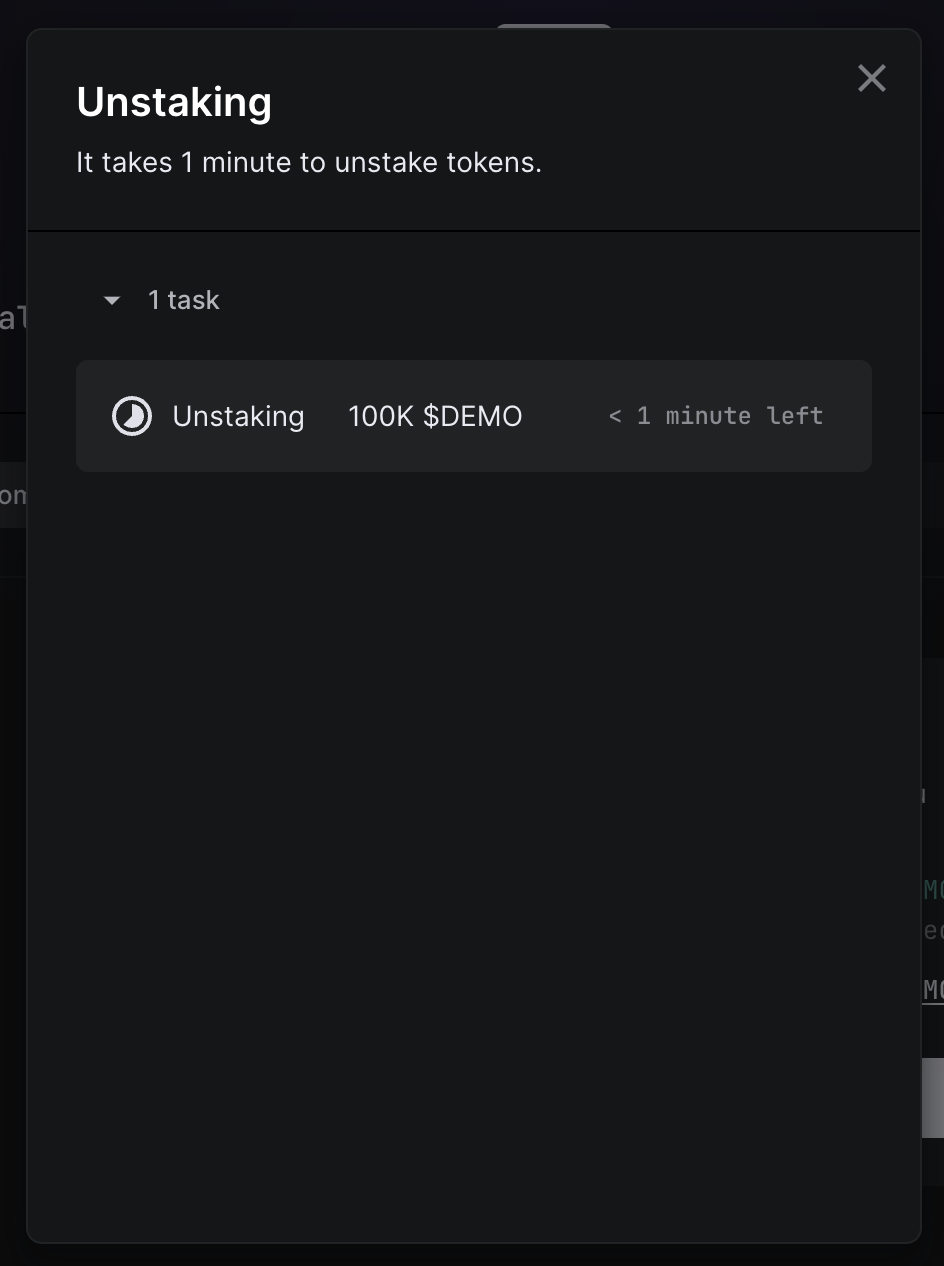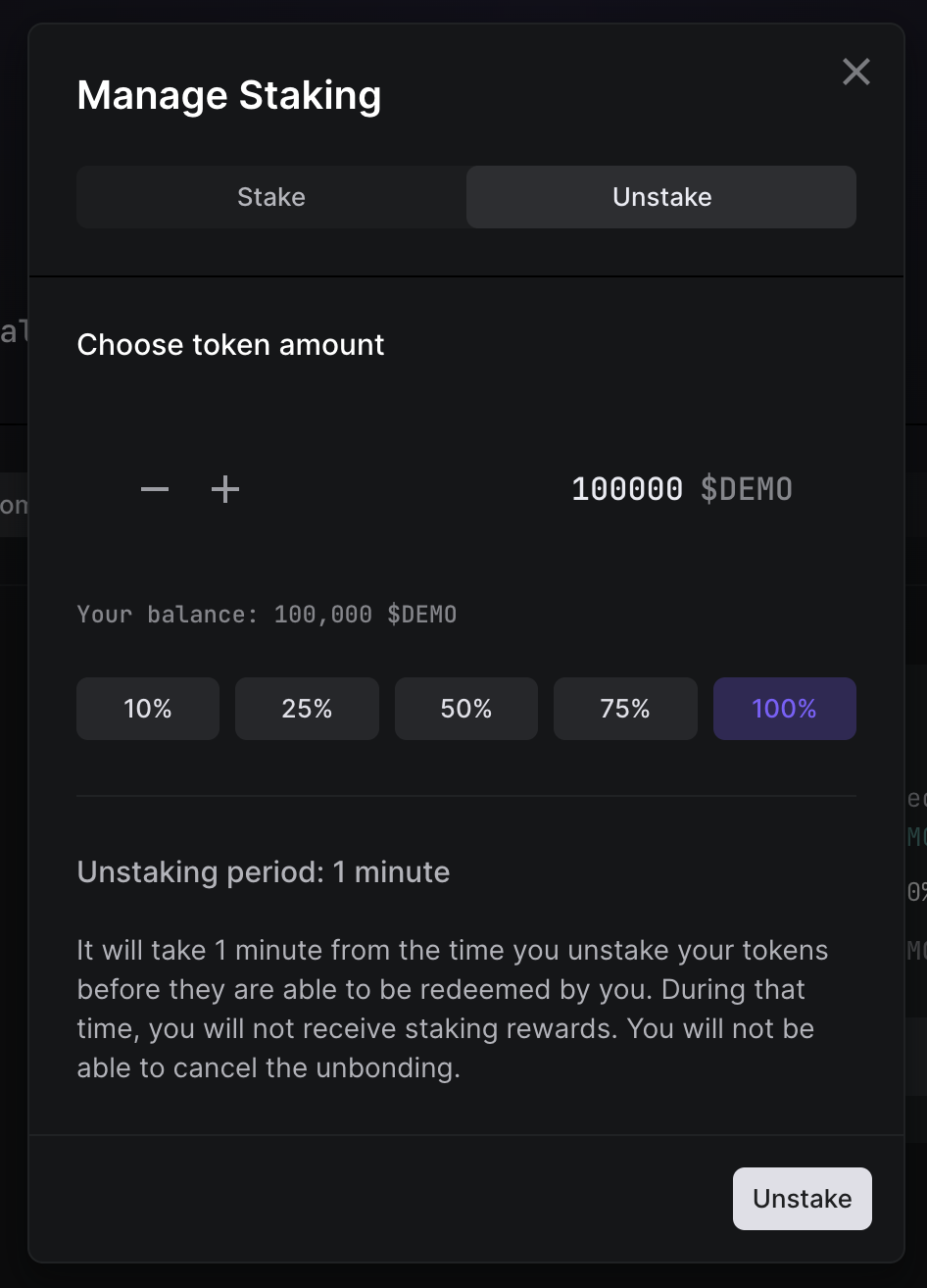 Unstaking token modal