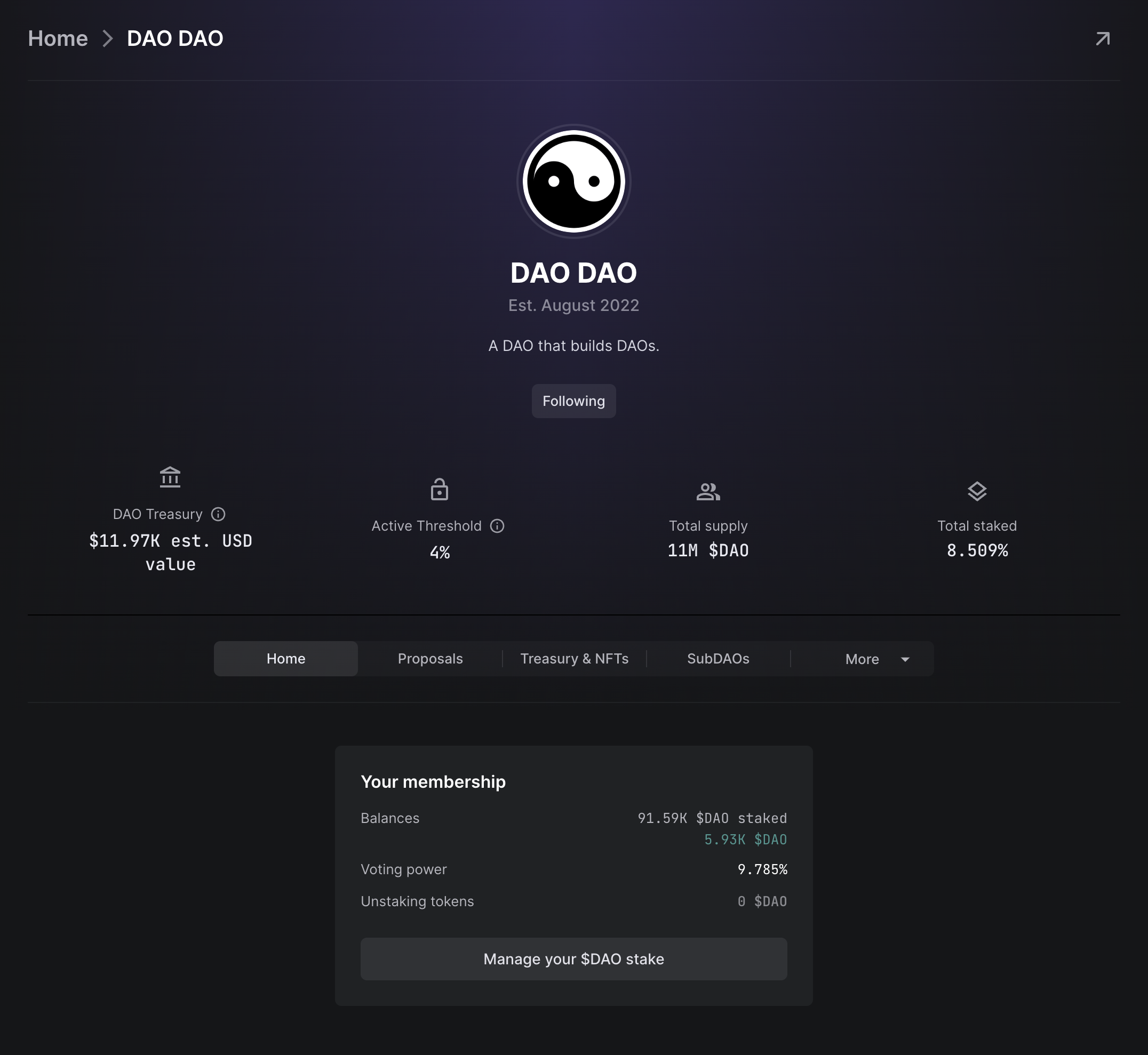 Token-based DAO home page